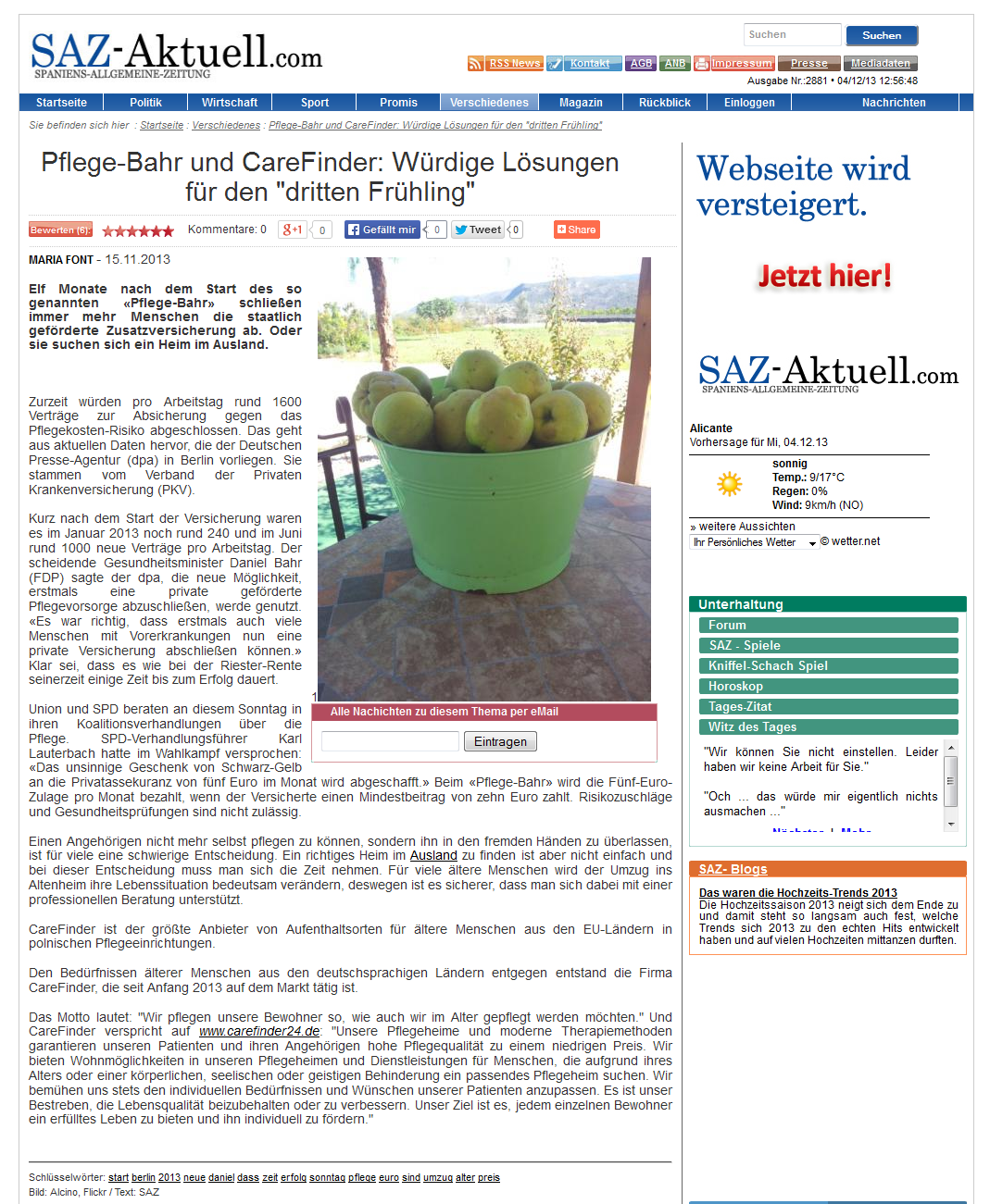 Pflege-Bahr und CareFinder: Würdige Lösungen für den "dritten Frühling" im Gespräch mit der Spaniens Allgemeine Zeitung