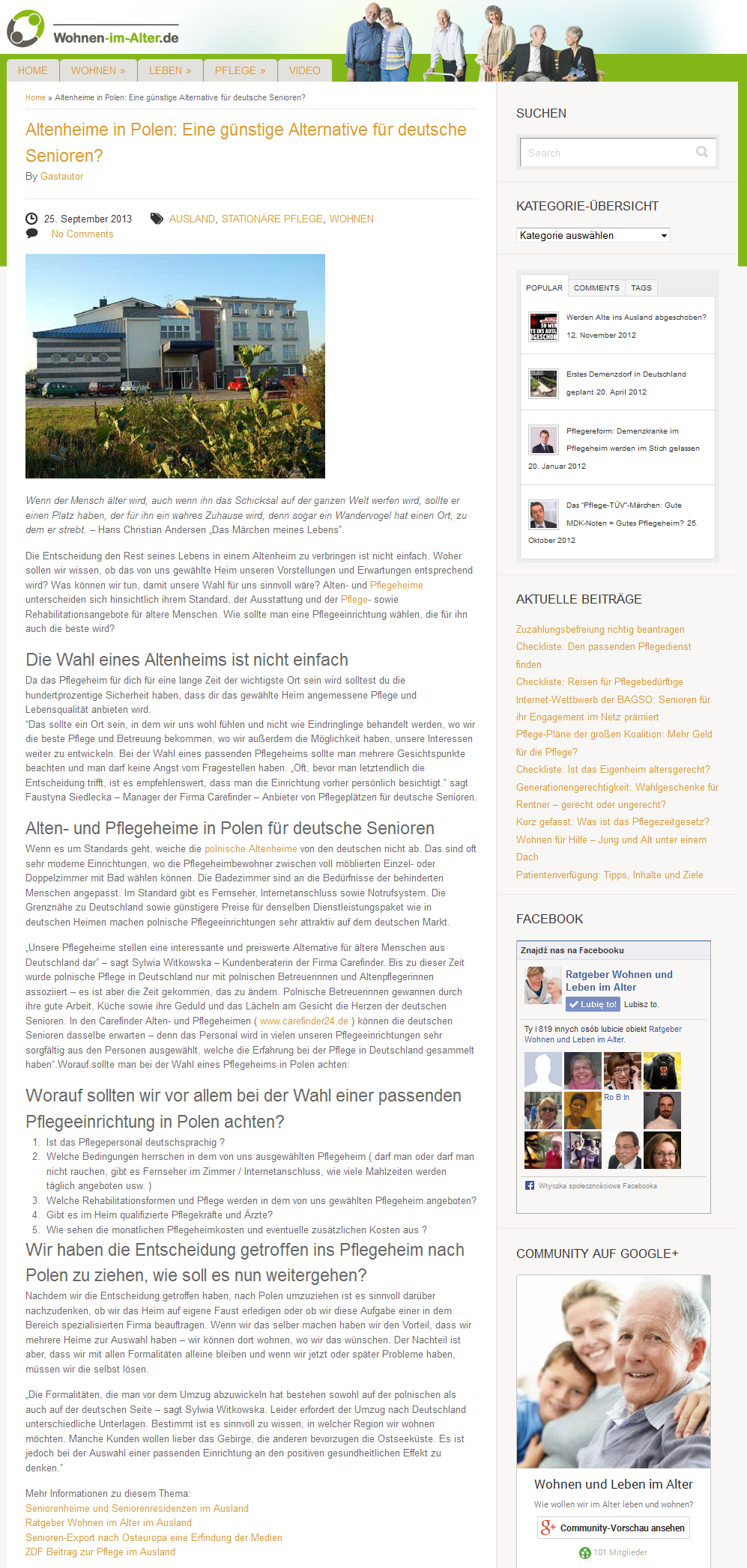 Unsere Pflegeheime stellen eine interessante und preiswerte Alternative für ältere Menschen aus Deutschland dar – erzählt Sylwia Witkowska dem Internetportal Wohnen-im-Alter